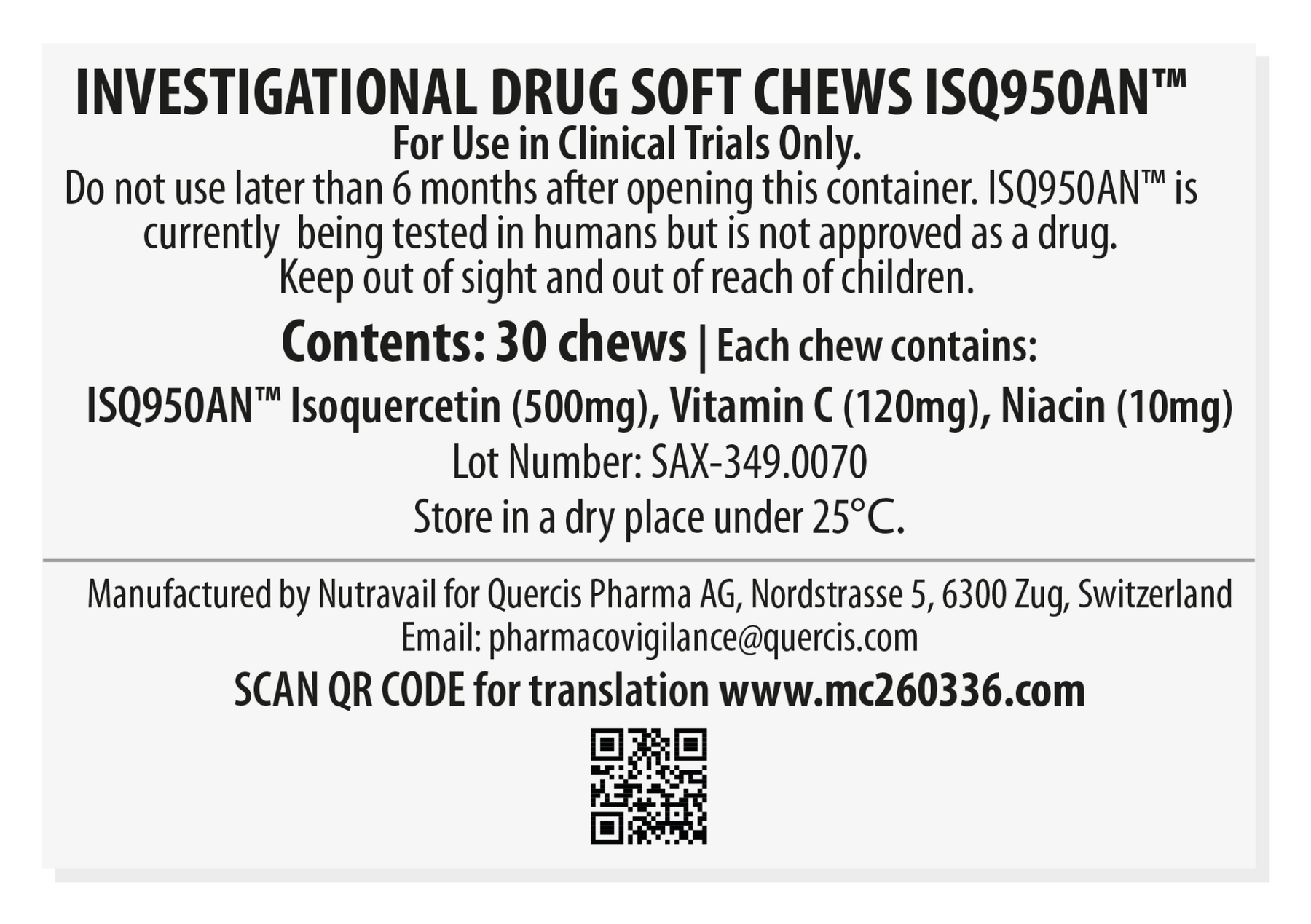 Do not use later than 6 months after opening this container. ISQ950AN™ is currently being tested in humans but is not approved as a drug.